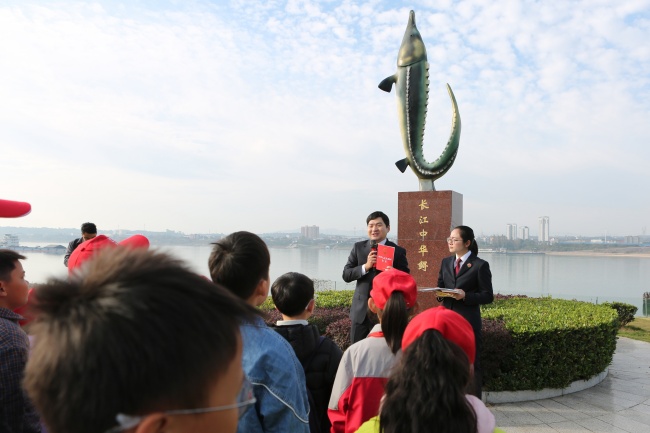 12月1日,湖北省宜昌市猇亭区检察院干警来到长江边为“长江小哨兵”志愿者及其家长带来一场特色普法课。游红摄