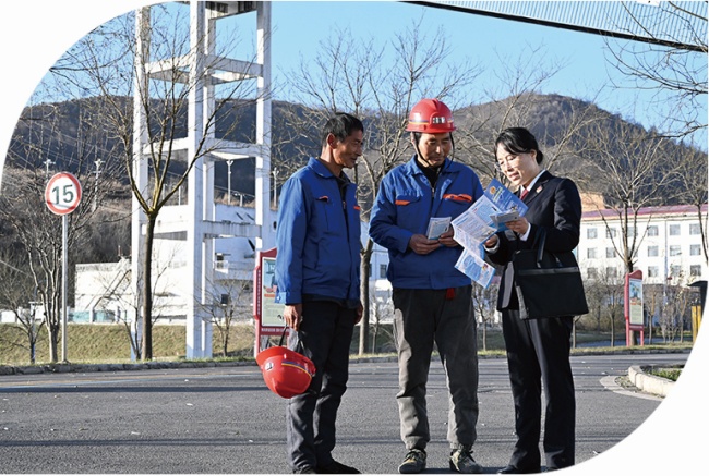 12月1日,陕西省麟游县检察院检察官走进煤矿向矿工开展宪法宣传,将安全生产与劳动权益保障等法律知识送至生产一线。邢蓉摄